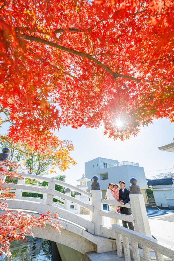 美しい紅葉と澄んだ青空の元で撮影することができました♪